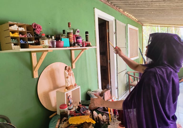 Eu nasci com os olhos já abertos para o invisível. Ainda dentro do ventre da minha mãe, meu pai escrevia-me cartas endereçadas à “sua bruxinha”. O destino, parece, já sabia quem eu seria antes mesmo que eu respirasse. Caminhei por todos os templos que o mundo ergueu em nome do sagrado: passei pelos bancos frios das igrejas católicas, senti o fogo dos cultos evangélicos, meditei em silêncio nos centros espíritas, dancei em círculos de Wicca sob a lua cheia, estudei os sutras budistas, os mantras hindus, os mistérios gnósticos, tamborilei com xamãs na floresta, contemplei o Tao e forjei minha alma no aço do estoicismo. De todas as portas que bati, nenhuma me rejeitou. De todas as vozes que ouvi, nenhuma me mentiu. E, ainda assim, meu coração sempre voltou para o lugar mais antigo: o caminho da Bruxa, da Médium, da que fala com os mortos e escuta os vivos que ainda não sabem que estão mortos por dentro. Hoje carrego nos pulsos as marcas de quem atravessou o fogo da iniciação. Sou Sacerdotisa das sombras e da luz, Maga que transmuta chumbo em ouro dentro da alma alheia, Alquimista do espírito, Guardiã das chamas antigas. Dediquei minha vida a estudar as ervas que curam, os cristais que lembram, os óleos que despertam, os tarôs que revelam. Aprendi que o corpo é templo, a mente é espelho e o espírito é chama eterna. Depois de décadas servindo ao Grande Tear, recebi o chamado irrevogável: tornei-me Sacerdotisa de Linhagem, portadora do cajado e da taça, aquela que abre portais e fecha ciclos, que unge frontes e corta cordas kármicas com a lâmina da verdade. Agora, de pé entre os mundos, ofereço o que sempre foi meu desde o primeiro batimento do meu coração ainda no útero: mentoria espiritual profunda, leituras que atravessam véus, rituais de cura, proteção e manifestação, iniciações para quem ouve o mesmo chamado que um dia queimou dentro de mim. Se você sente que algo maior lateja em seu peito, se a noite lhe sussurra segredos que o dia não explica, se sua alma pede fogo onde só havia cinzas: eu estou aqui. Sempre estive. A bruxinha que meu pai saudou antes mesmo do meu primeiro grito agora é a Mulher-Medicina que estende a mão através do tempo. Venha. O caldeirão já ferve. A lua já nos espera.